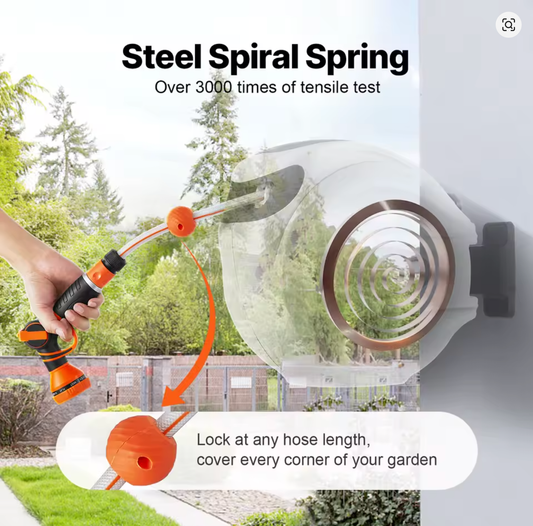 30M Retractable Garden Hose Reel Wall Mounted Hose Reel Heavy Duty Hose Reel with 9 Patterns Nozzle and 180°Swivel Bracket
